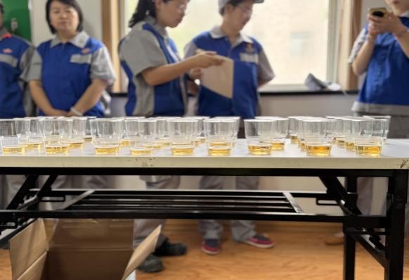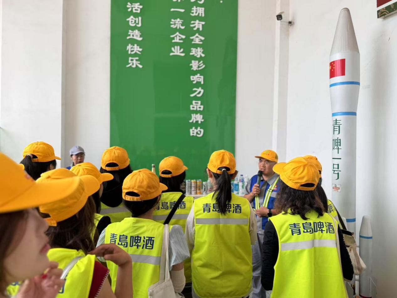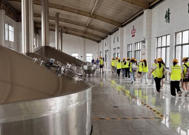 在刘强的带领下,师生们按照“糖化车间——包装车间——座谈品酒”的参访流程进行。参访过程中,现代化的生产设备与标准化的生产流水线引发了同学们的浓厚兴趣,通过聆听讲解深入了解了青岛啤酒的产品种类、发展历程以及糖化发酵工艺。