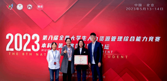 2021级人力资源管理2班刘雅欣、李昊飞、霍中一3位同学组队,赵珍、陈虹担任指导教师,葛蓉老师带队,经过线上模拟及现场角逐,荣获第一赛区一等奖,并成功晋级全国总决赛。