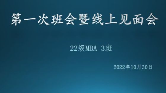 10月30日晚上8:00,2022级MBA 3班第一次班会暨线上见面会如约举行,班主任老师与36名同学齐聚云端,共同开启3班学习生活新篇章,班会由学习委员郭紫凝主持。