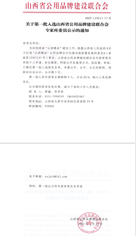 近日,山西省公用品牌建设联合会公示了第一批入选专家库委员名单,91探花
