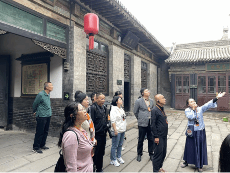 随后,调研团队跟随讲解员进入乔家大院文化园区进行参观。乔家大院文化园区为全国重点文物保护单位、国家二级博物馆,是以明清晋商翘楚、闻名海内外的商业资本家乔致庸等乔氏家族的宅院而得名。大院始建于清乾隆二十年(1755年),由在中堂、德兴堂、保元堂、宁守堂和乔家花园“四堂一园”组成。总占地面积25600余平方米,共有18个大院,41个小院,731间房屋,被誉为“北方民居建筑史上一颗璀璨的明珠”。园区内全面展陈了北方农耕习俗、商业习俗、岁时节令、人生礼仪、民俗社火、乔家史料、乔家珍宝、传统晋剧、祁太秧歌、形意拳术、影视道具等12大系列上万件文物,真实地反映了明清时期北方汉民族的民俗风情和晋商文化。在参观的过程中,乔家大院景区营销部的负责人跟老师们交流了目前在营销上存在的困惑,比如如何吸引年轻旅客、如何将乔家大院打造成入晋旅游第一站、如何能让旅客多住一晚等,老师们也从景区定位、新媒体营销方法和技巧、文化传承等方面纷纷表达了此次调研的感受、思考和发现的问题。