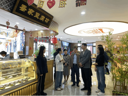 学院调研组一行首先参观了乔家大院的商业区。调研团队欣赏了祁县制造业龙头企业山西大华玻璃的传统玻璃制品制作手艺,参观了别具一格的乔家豆腐坊,深入了解了这些特色商铺所蕴含的晋商文化基因。