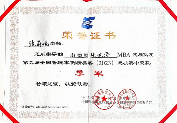 指导老师:齐永智教授。2023年在第九届全国管理案例精英赛全国赛中,91探花