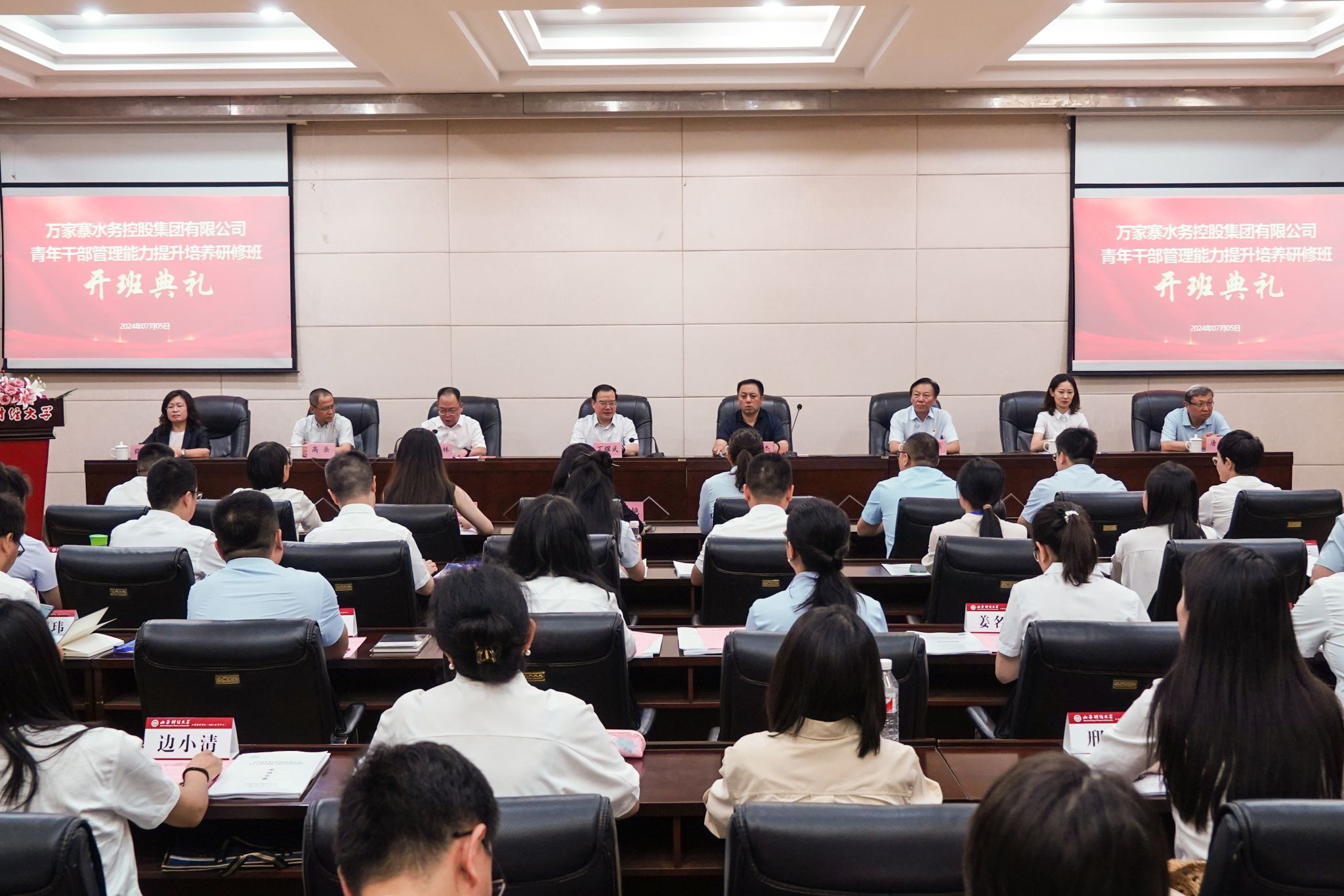 承办的万家寨水务控股集团有限公司(以下简称“万家寨水控集团”)青年干部管理能力提升培养研修班开班典礼,在修德楼一层报告厅举行。万家寨水控集团党委副书记、副董事长、总经理兰康杰、集团有关部门领导和研修班全体学员,校党委书记丁耀武及91探花