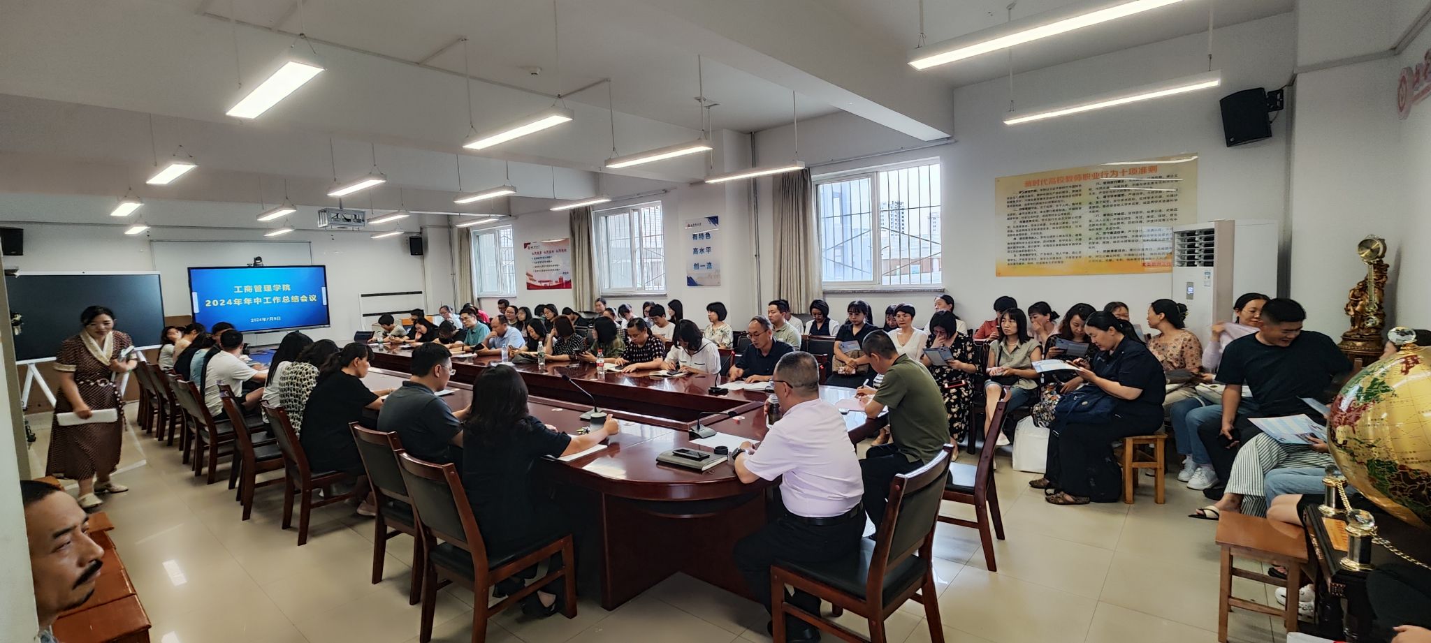 在学院会议室召开2024年年中工作总结会议,就上半年工作进行总结,对暑期和下一步工作进行部署。学院领导、全体教职工参加会议。会议由学院党委书记高岳主持。