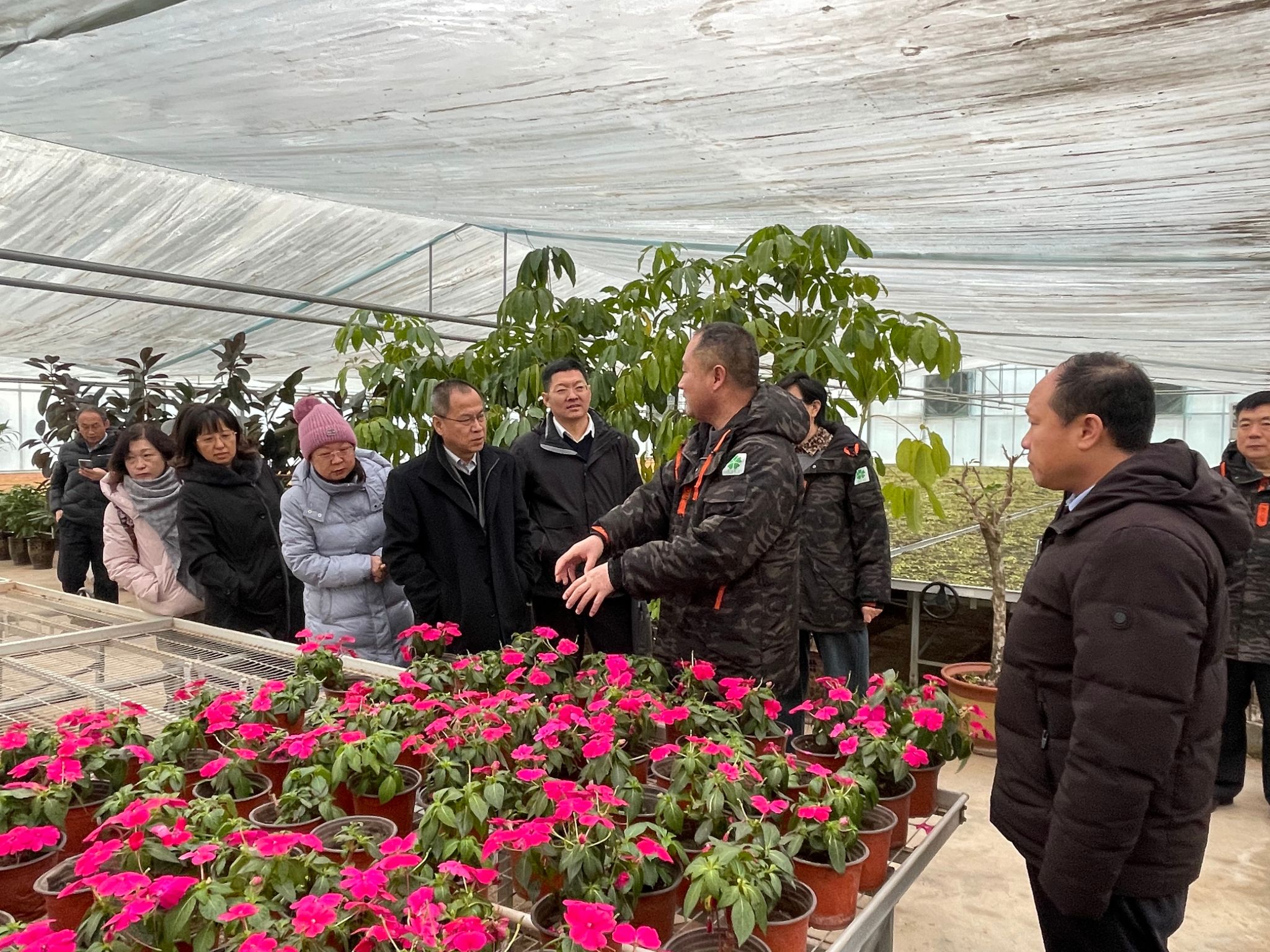 参访团队首先来到康培现代农业园区,业务负责人详细介绍了园区的花卉育种、种植情况,包括大规模机械育种的播种区,以及立体化种植黑心菊、松果菊等花卉的专用苗床。学院书记高岳在参观期间,针对机械化育种、对接研学、转换生产力等方面发表了独特见解。随后,团队前往康培园林工程机械部。工程机械部总经理薛东升着重介绍了日常运营管理系统,该系统可实时显示企业施工用车、人员外派、财务报表等情况,并通过GPS、北斗双系统对车辆位置、路线、速度、停留时间进行全程管控,实现了企业在运输板块智慧化运营。