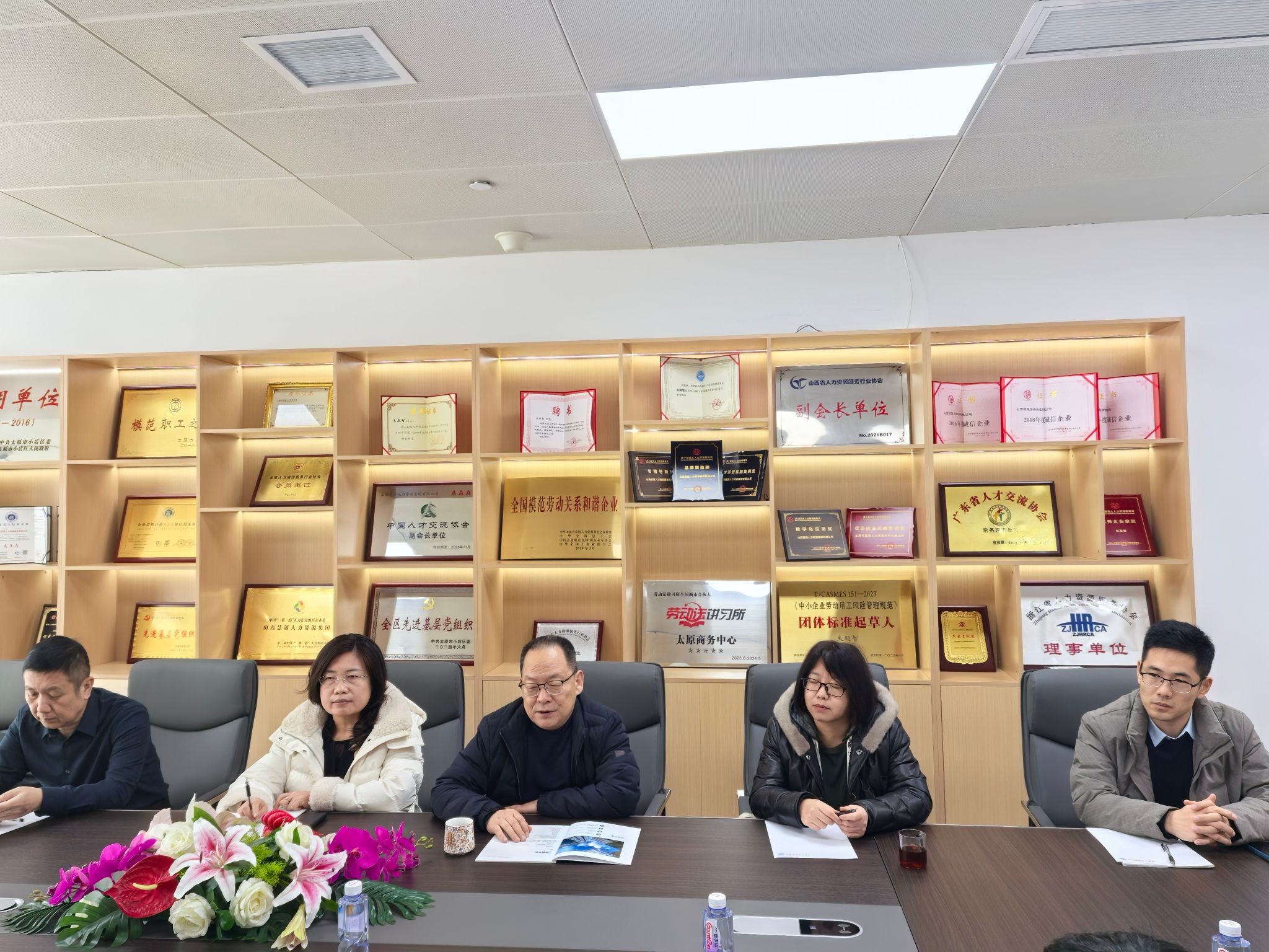 实践基地山西慧源人力资源集团会议室会见了学院院长卫虎林、副院长薛继东及教师代表张征、周晔,就“数智赋能人力资源高质量发展”这一主题开展座谈交流。山西省文化和旅游厅原巡视员李荣钢、山西省人力资源和社会保障厅人力资源流动管理处处长王小园、太原市小店区副区长郭利河、山西慧源人力资源集团董事长朱殿智等参加座谈交流。