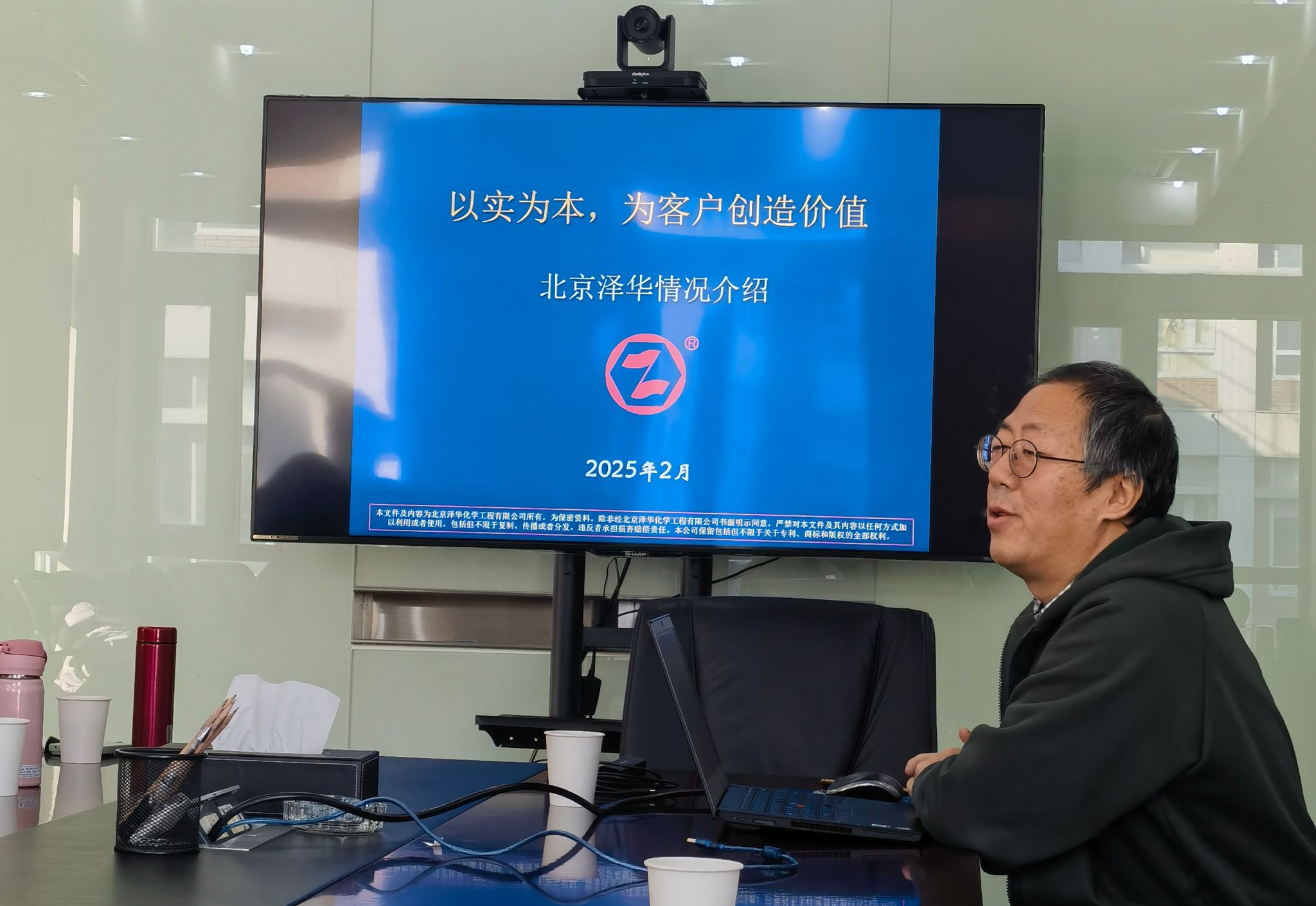 2月10日上午,在泽华化工副总裁颜庭政的带领下,调研团队实地参观了泽华的办公区和产品展示区,现场感受了泽华人的精神面貌和文化氛围。参观活动结束后,颜总围绕“以实为本,为客户创造价值”向师生们全面介绍了公司的发展历程、未来规划与愿景、核心竞争力、主要客户基础、团队概况以及取得的成就,并对师生们提出的问题进行了细致的解答。