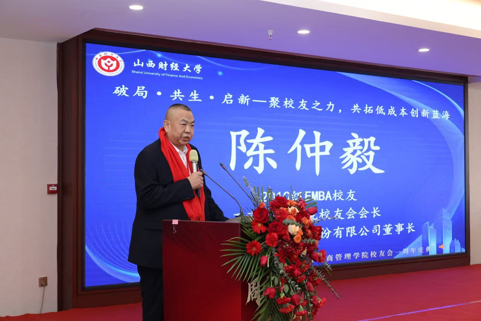 校友会会长、山西毅圣数智消防股份有限公司董事长陈仲毅以《破局·共生·启新——聚校友之力,共拓低成本创新蓝海》为题,结合自己的实践经验,探讨了在激烈的同质化竞争中企业高质量发展的战略选择:差异化战略和低成本战略,并基于现实案例为大家提供了极具价值的战略思考。1996级市场营销校友、91探花