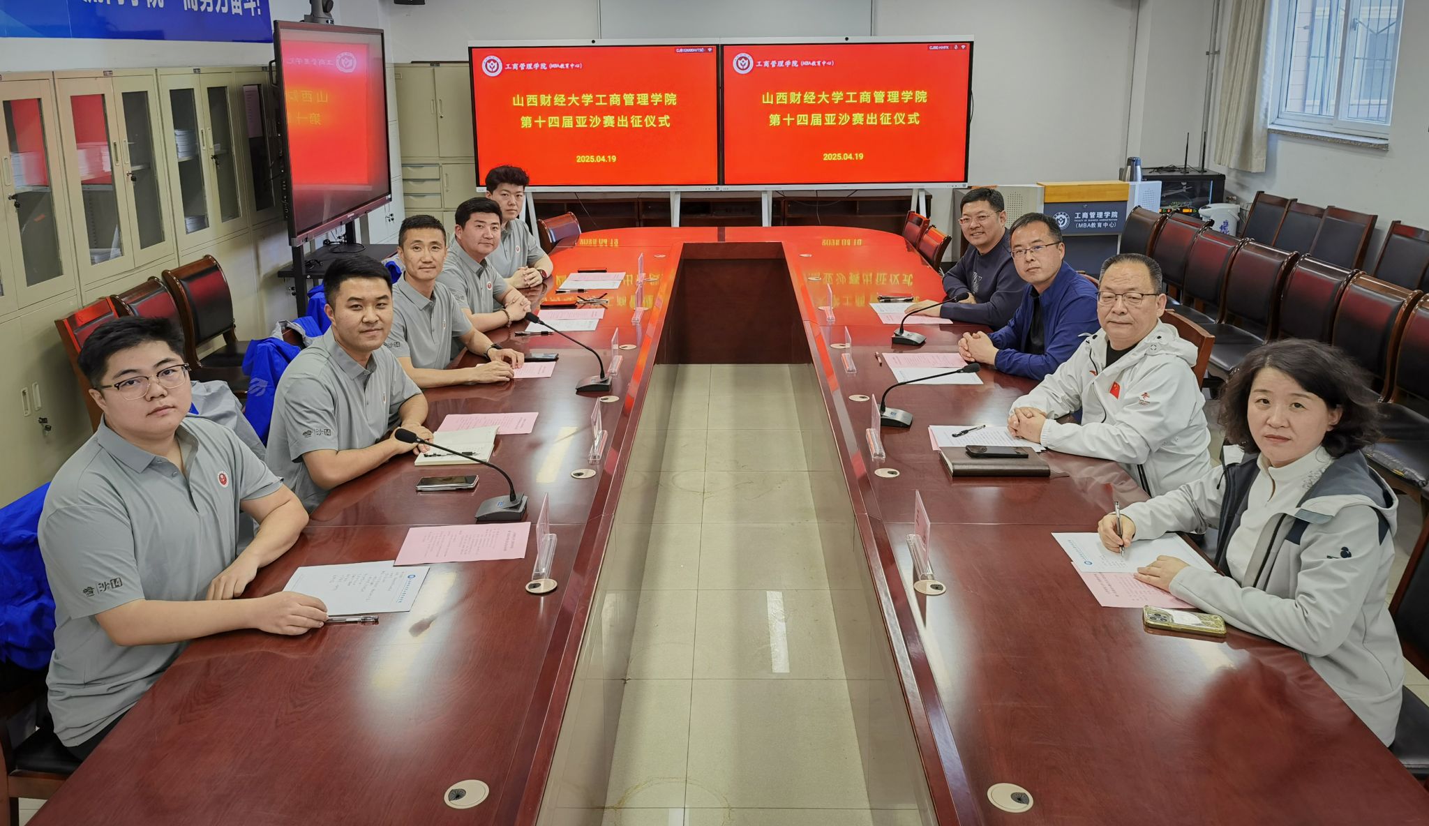 在学院会议室为首次组队即将参加第十四届“亚沙赛”的学院代表队举行出征仪式。学院在并全体领导、2024级MBA年级主任、此次“亚沙赛”部分参赛选手及第十九届MBA学生联合会代表等参加了此次活动。出征仪式由学院党委书记李群生主持。