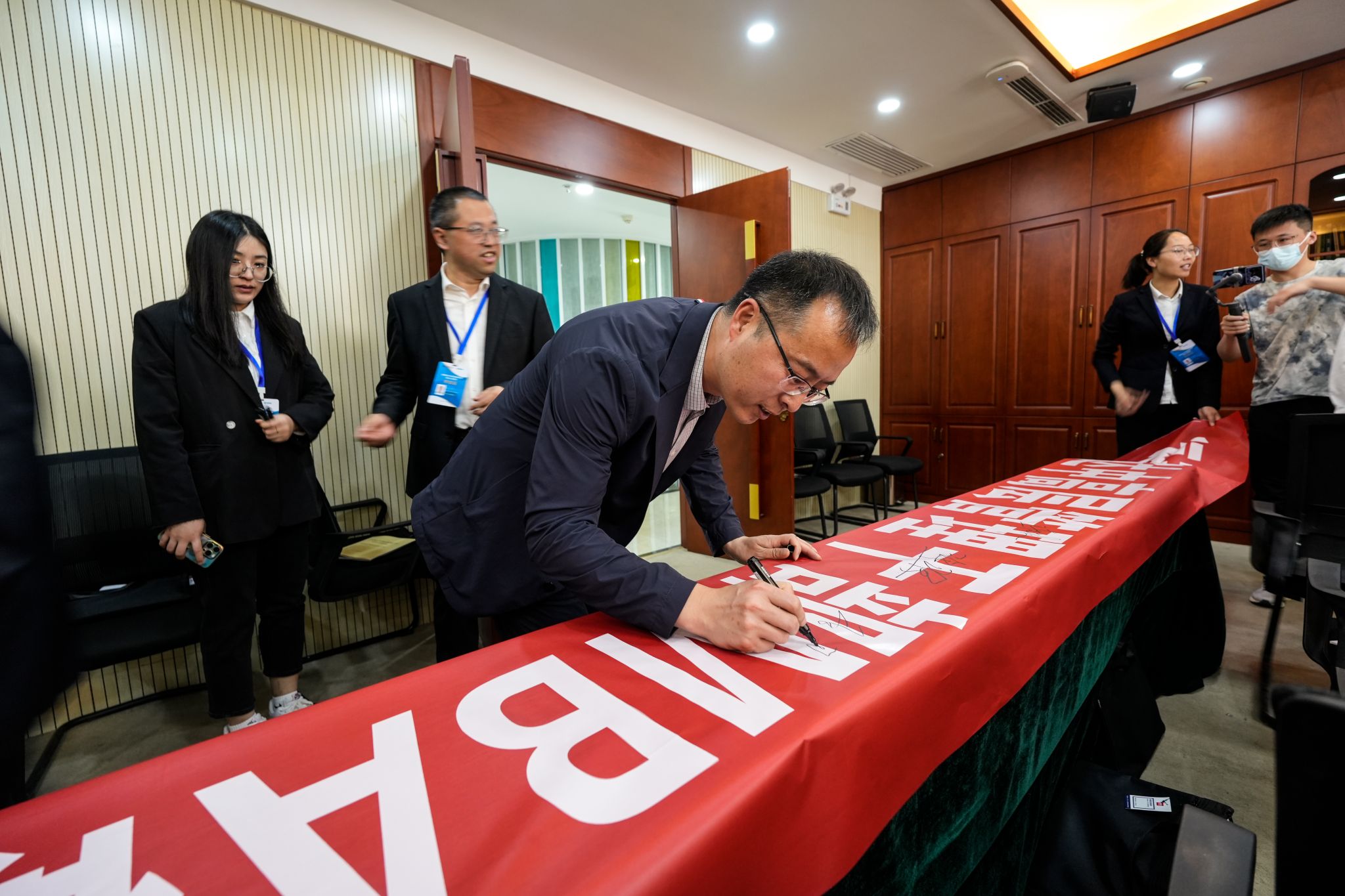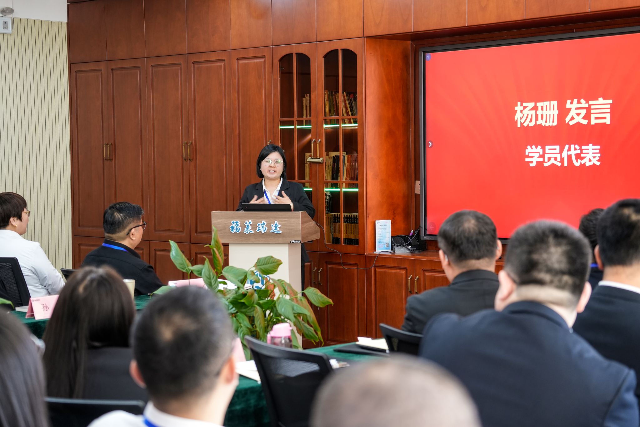 管理原理教研室主任张莉艳对研修班的总体设计和培养要求作了全面介绍;学员代表、公司副总经理杨珊代表全体学员作表态发言,表示将全身心投入到这次学习中,将所学转化为推动企业创新发展的动能;最后,双方领导,研修班学员在横幅署名,并进行合影留念。