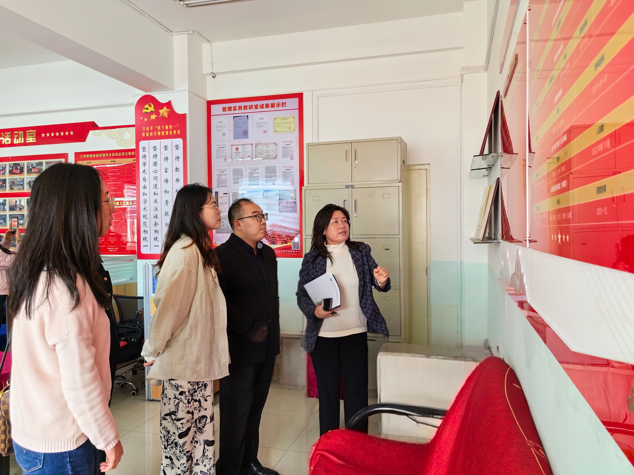 文化墙和第三批“全国党建工作样板支部”——管理实务教研室党支部,就学院的办学理念、办学特色、党建引领等方面进行了交流探讨。