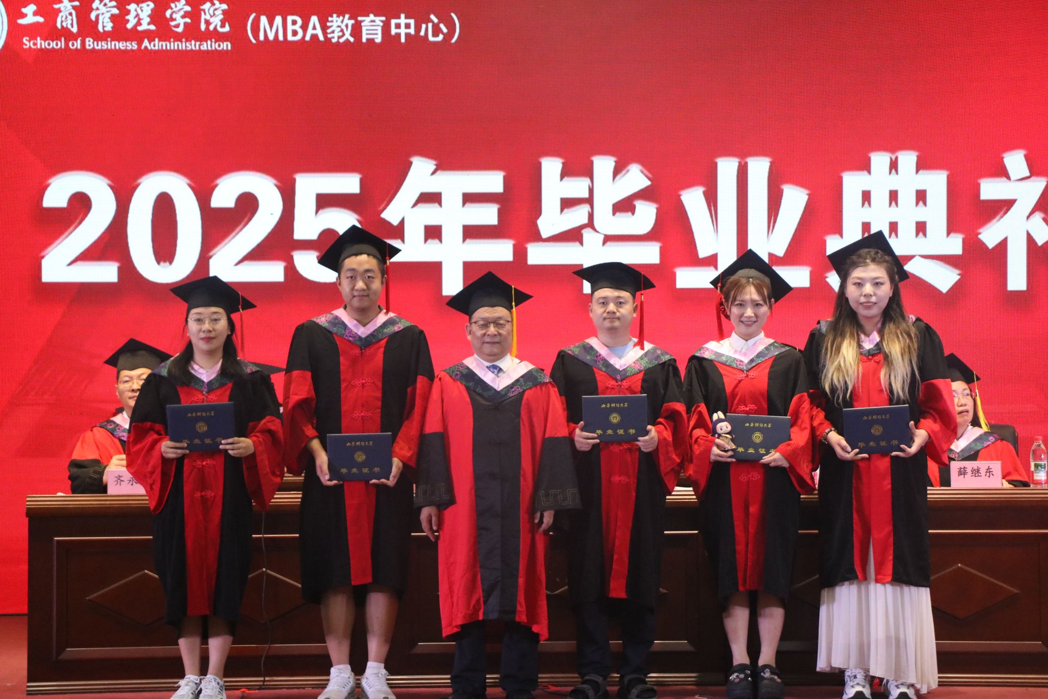 典礼现场,主席台领导先后为优秀毕业生颁发荣誉证书、为校友联络员颁发聘书。卫虎林院长为博士研究生逐一颁发毕业证书,主席台全体人员共同为学术研究生和本科毕业生颁发证书,见证这一重要时刻。