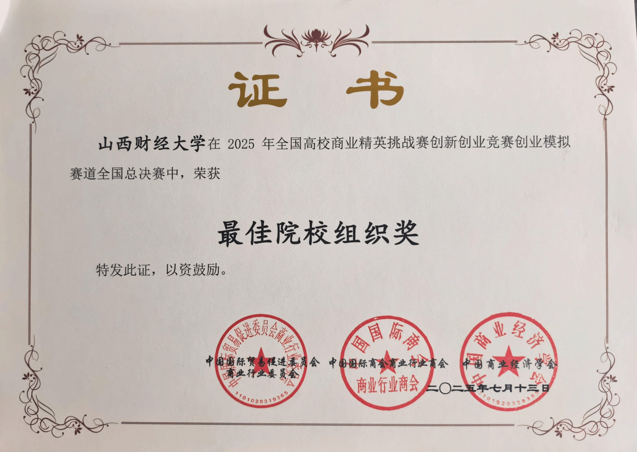 荣获最佳院校组织奖。