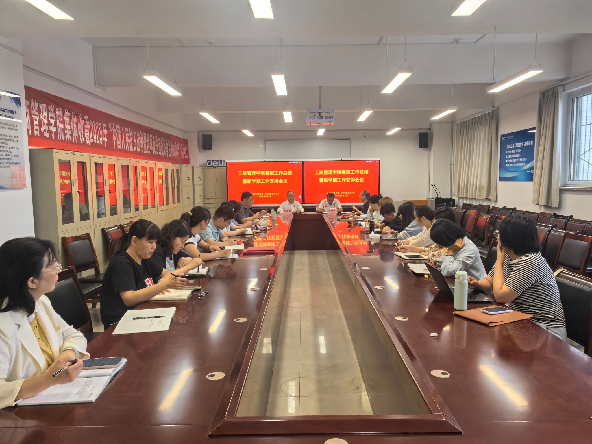 在会议室召开2025年暑期工作总结暨秋季学期工作安排会议。学院领导班子全体成员、科级干部、院工会主席、各教研室主任(支部书记)、全体行政人员、辅导员等参加了会议。会议由学院院长卫虎林主持。