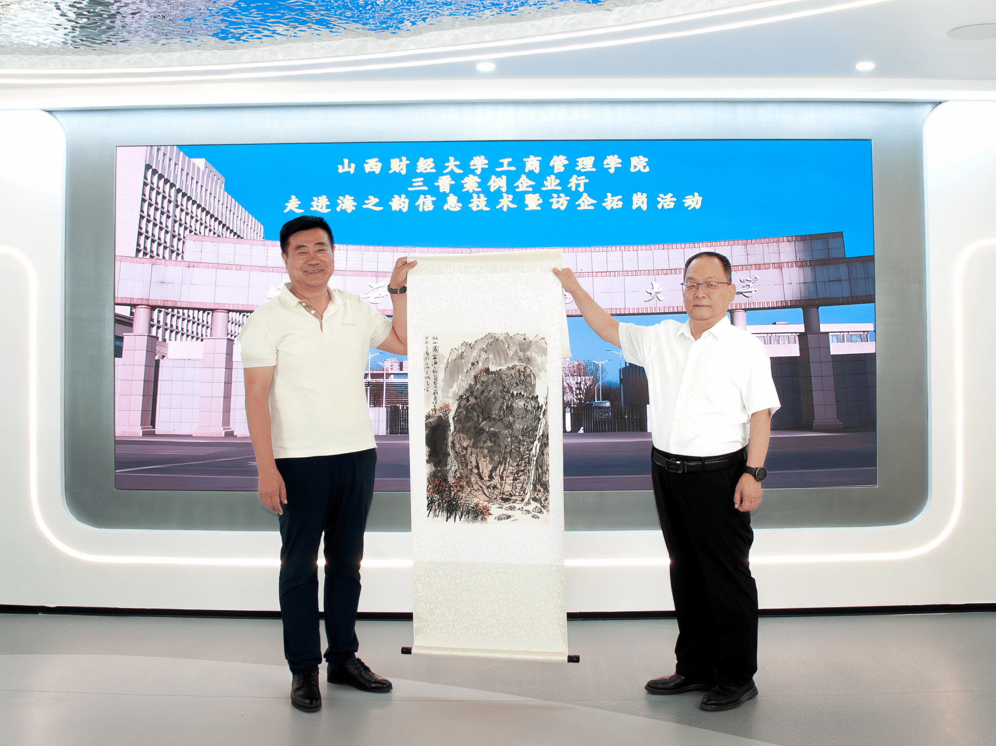 第12次“三晋案例企业行暨访企拓岗”走进山西海之韵信息技术有限公司,并与公司高管团队举行座谈会。学院领导班子成员、各教研室主任及MBA校友会代表等10余人参加。