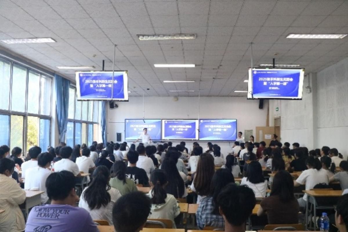 分别组织举办了两场“2025级本科新生见面会暨入学第一课”。学院全体领导、办公室主任、团委书记、各教研室主任、校友代表以及2025级全体本科新生参加会议。会议由学院党委书记李群生主持。