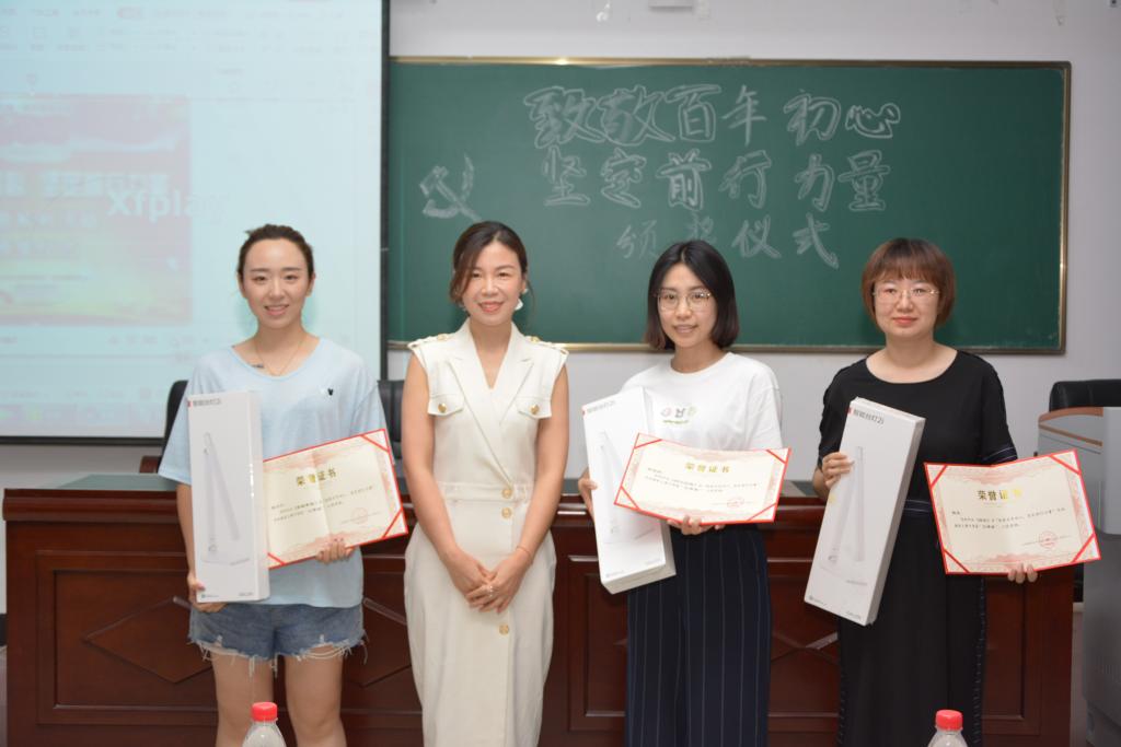 张芳老师为获得三等奖的程蕊、张琳莉、张乃文颁奖。