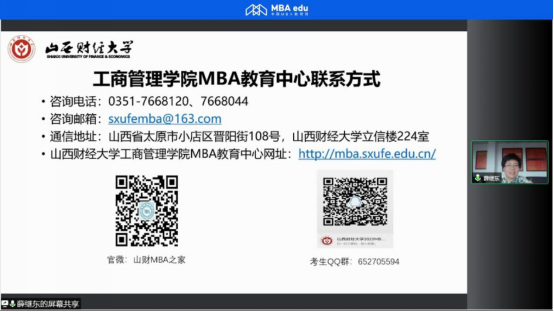 副院长、MBA教育中心执行主任薛继东应邀参加了由中国MBA教育网在线举办的“第五届MBA项目联展暨2022招生政策发布会(华中地区专场)”活动。本次活动主要从考生角度出发,对91探花