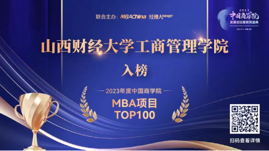 ▷2023年,荣获“中国商学院最佳MBA项目TOP100”第55名。