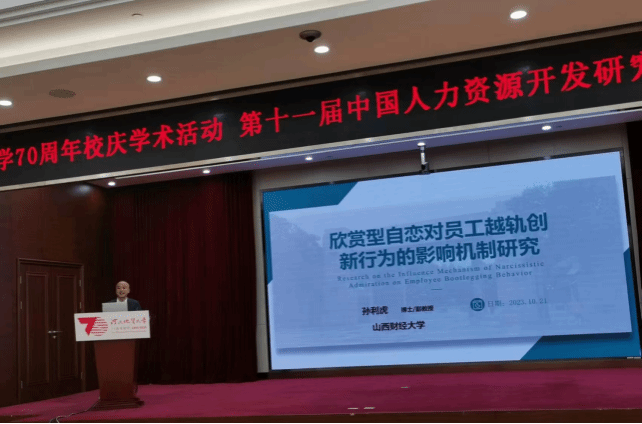 会议围绕高质量发展与人才评价、科教兴国战略与人才评价、增进民生福祉与人才评价、数字和智能化与人才评价等议题,与会专家、学者、社会团体代表,分享了研究成果、人才测评方法与工具、评价理论与实践要领等内容。孙利虎博士在大会中做了《欣赏型自恋对员工越轨创新行为的影响机制研究》主题报告。