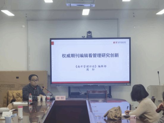 随后,周轩博士和学院教师展开互动交流,回答了老师们关于期刊论文发表的系列困惑,并建议老师们从研究选题看研究创新,关注高端论坛正文主题,积极应对管理研究创新的机会与挑战。