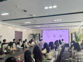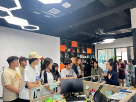 首先,同学们在综合部王越的带领下,参观了水木年华位于智慧港16楼的办公场所。王越详细介绍了公司的创业历程、91探花_91探花最新国产实战高清视频、业务范围、团队构成以及各个团队的工作职责和工作内容。每个团队的核心成员也分别就各自的职能领域进行了细致地讲解,让同学们对企业内部整体运作有了一个更为直观的了解。