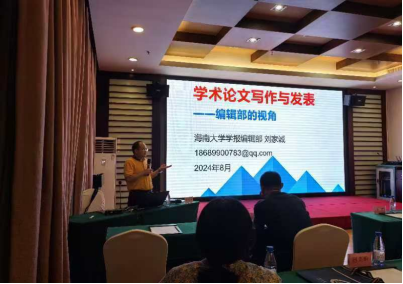 副院长童泽林教授主持了8月20日上午的开幕式,并介绍了本次研讨会包括的四个环节:名师授课、经验交流、个性指导、期刊面对面。开幕式后,来自对外经济贸易大学的孙瑾教授于20号上午和下午做了两场报告,主题分别为“研究热点与论文选题”和“理论基础与文献回顾”。报告中,孙瑾教授以丰富、生动的研究案例为素材,从关注重大社会问题和组织挑战、挑战现有范式、提出新的理论视角、跨学科、社会影响等多个方面介绍了营销研究选题思路和具体的选题方法,讲解内容丰富、实用、前沿。20日晚上,《海南大学学报(社科版)》主编刘家诚教授跟与会者分享了期刊的发展和用稿原则。