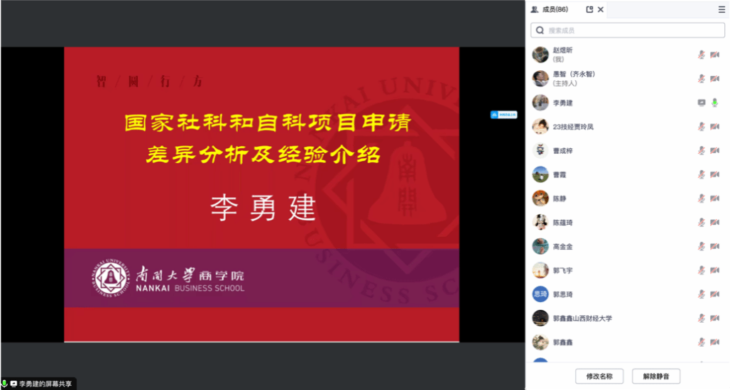 在腾讯会议举办第51期博士论坛。南开大学二级教授、博士生导师,人文社会科学研究部常务副部长李勇建教授应邀为91探花