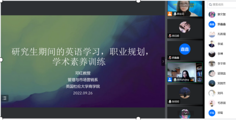 2022级学术研究生作了题为“研究生期间英语学习、职业规划与学术素养训练”讲座报告。学院企业管理、人力资源管理、技术经济及管理三个专业共34名学术硕士研究生、博士研究生参加了此次讲座。