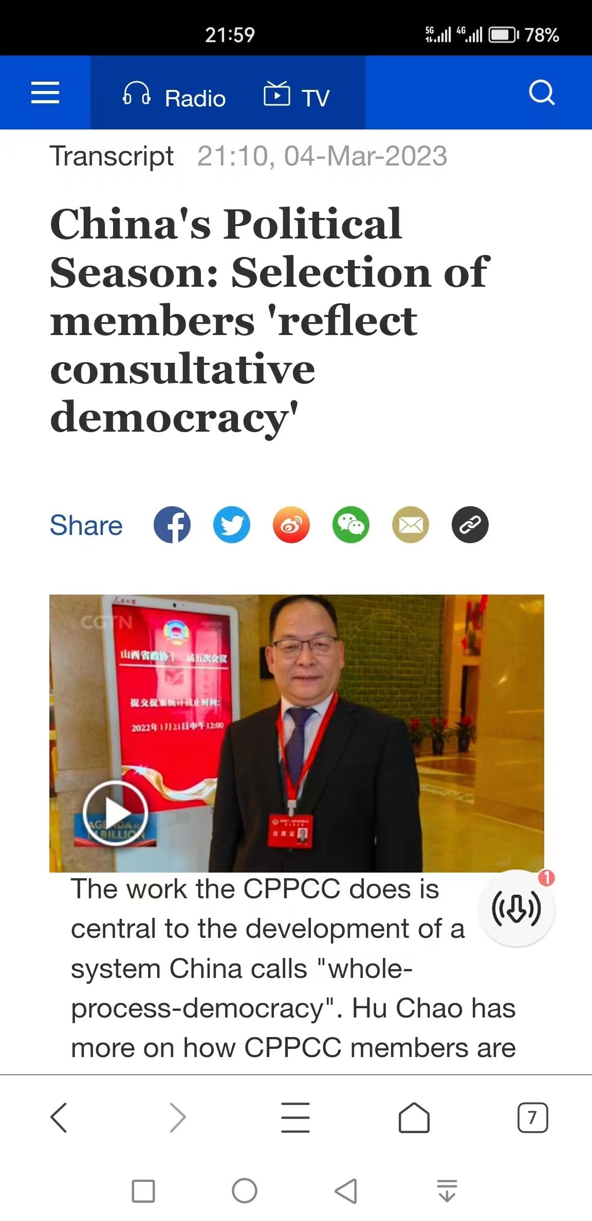 卫虎林院长接受央视国际新闻采访