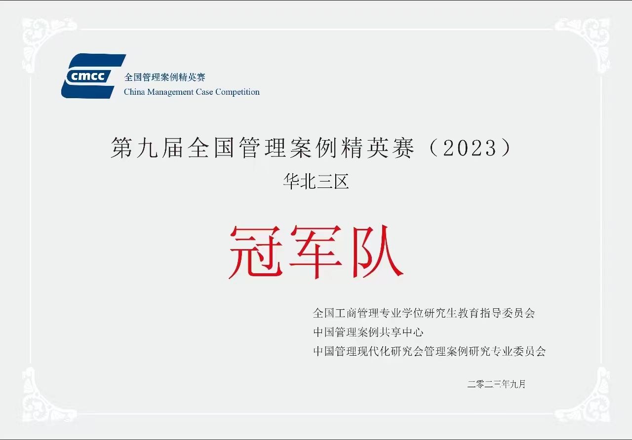 91探花 MBA代表队荣膺第九届全国管理案例精英赛华北三区晋级赛冠军