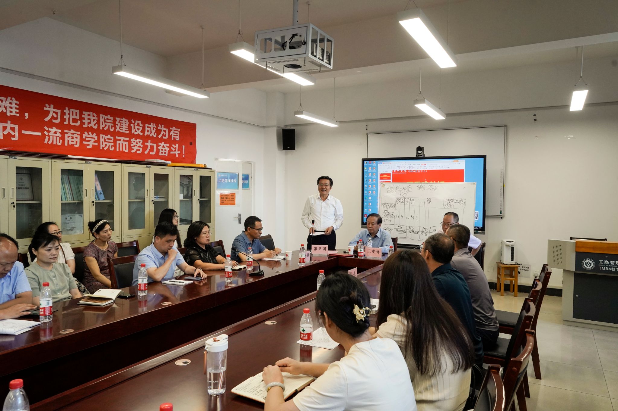国际商科认证工作进行了全面、详细的指导,他指出,国际商科认证作为一项持续性工作,需要从学院使命、愿景等方面进行系统的顶层设计,推进国际商科认证的后续工作重点在于:一是把责任管理、绿色可持续等理念融入样板专业建设、特色课程打造;二是进行有组织的教学,重点打造内容新、范围广的特色课程;三是强化师资队伍发展战略规划,重视学科建设重点发展领域的人才引进;四是进一步改善硬件设施,积极主动推进国际商科认证。