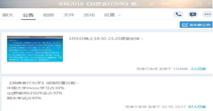 2.发布开课通知:一是本次课堂学习任务和具体时间段安排,二是本课程成绩权重分配。
