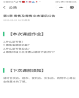 “各位同学:明天下午我们就正式上课了,请大家提前做好准备。2点半开始上课,进入慕课堂,要签到,我把签到放的时间长一些,不签到就算旷课了。大家要看陈立平等老师《零售管理》第1章的视频,要做慕课堂里的随堂练习和讨论,这些是必须在3个小时的上课时间进行的,下课后就不能做了。”