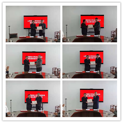 会上,王建勤首先对校友会成立以来所有校友的付出表示衷心感谢,传达了学校特别是学院对MBA校友会下一步发展的总体思路和建议,并向校友会各部部长颁发了聘书。他强调,作为学校目前惟一一个依托专业和学科成立的校友会,在我省全方位推动高质量发展和学校第三次党代会提出的“12356”发展战略中,要充分发挥五千余名MBA/EMBA校友资源,做出应有贡献。校友代表、太原邮储银行高鹏与徐敏介绍了邮储银行的发展历史以及业务概况,并与校友会达成初步合作意向。