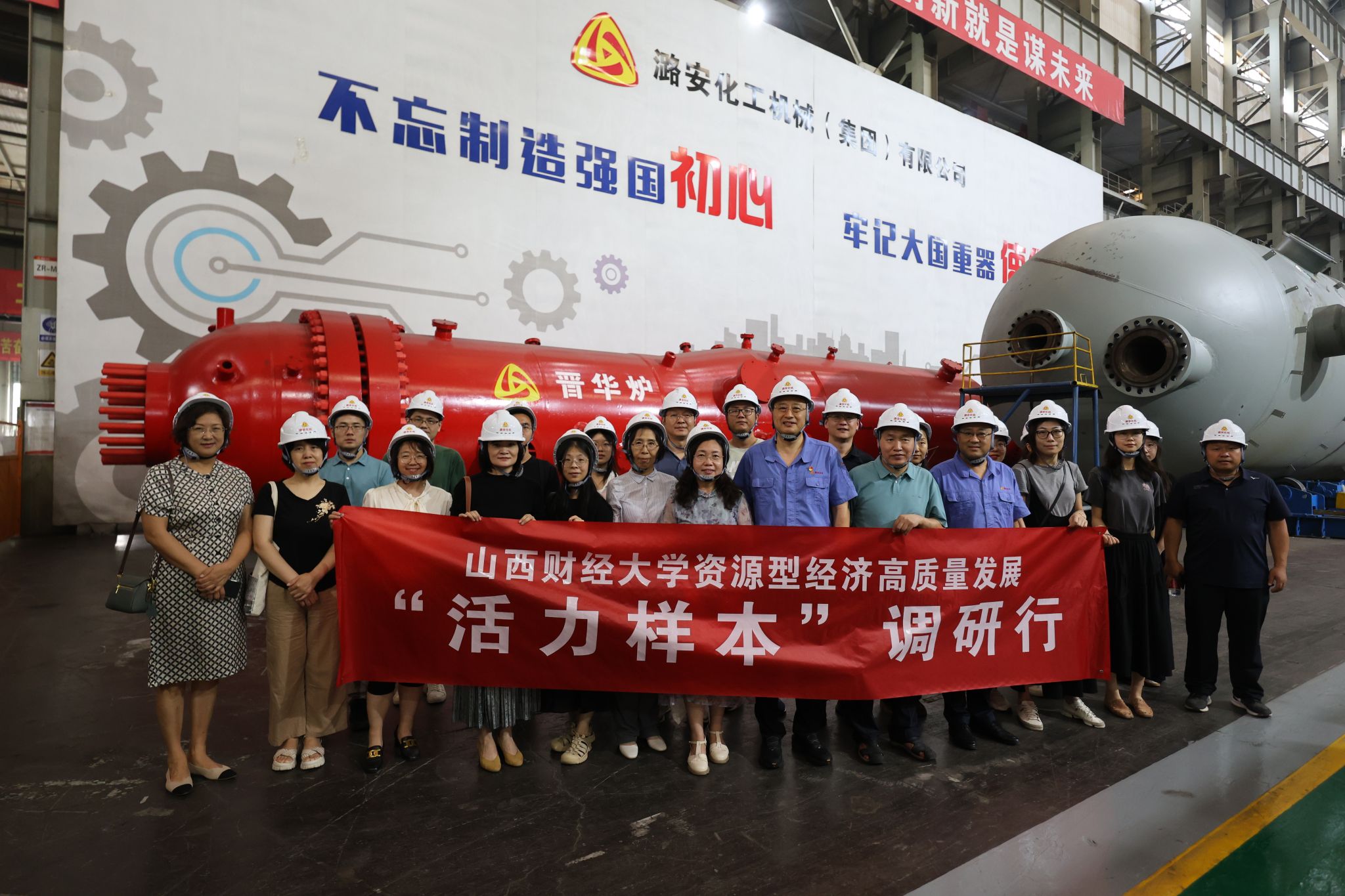 师生们在任金锁的带领下参观了潞安化机生产车间、数智运管中心、绿氢装备生产车间及企业展厅,实地观摩了煤气化核心设备“晋华炉”的制造流程和氢能装备“晋华槽”生产线。详细了解了公司从传统煤化工装备向新能源装备领域转型的技术路径,近距离感受了高端装备制造的实践场景。