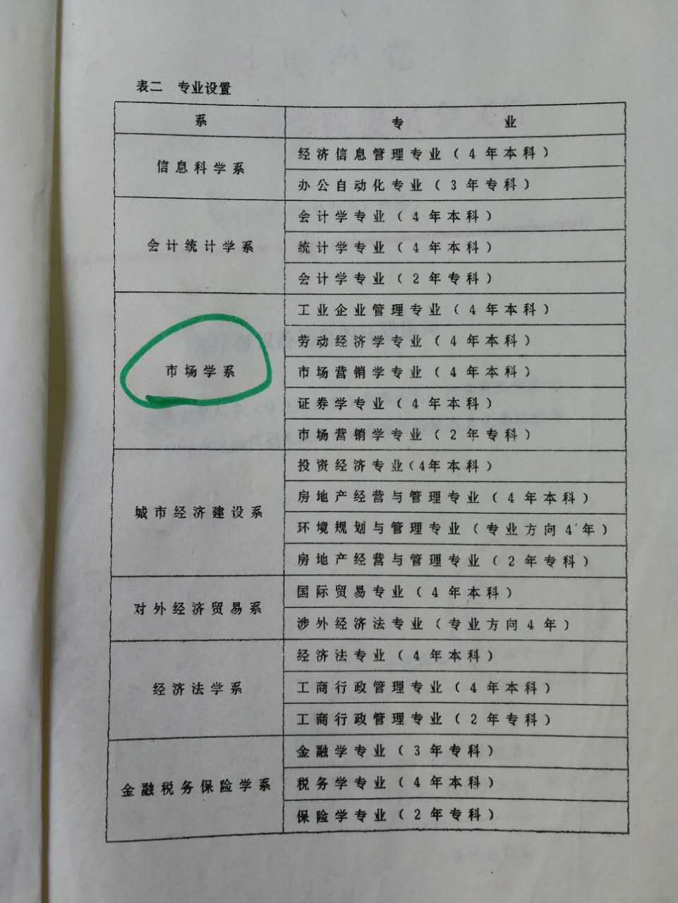 1993年4月,原山西经济管理学院的国民经济管理系更名为市场学系,下设工业企业管理专业(4年制本科)、劳动经济学专业(4年制本科)、市场营销学专业(4年制本科)、证券学专业(4年制本科)、市场营销学专业(2年制专科)。