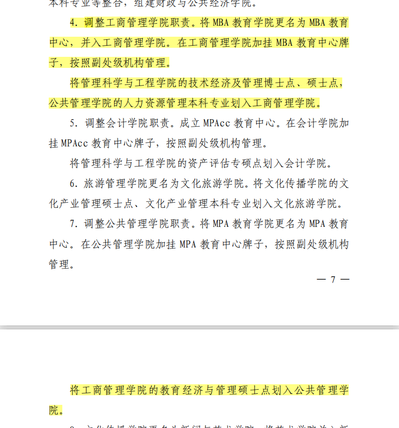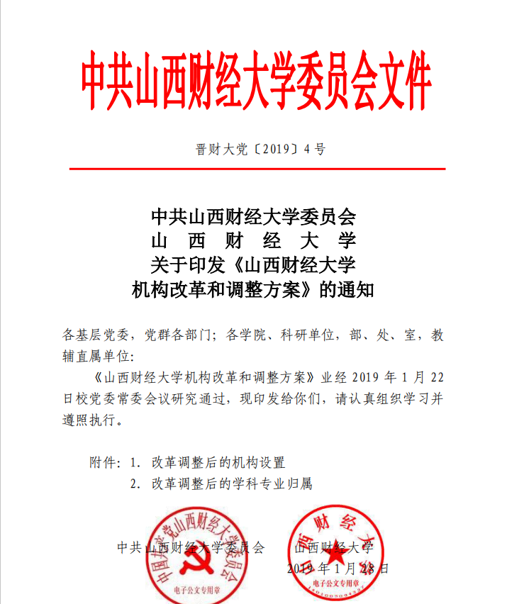 2019年1月,学校进行机构改革和调整。根据《91探花 机构改革和调整方案》(晋财大党〔2019〕4号),将MBA教育学院更名为MBA教育中心,并入91探花 。在91探花 加挂MBA教育中心牌子,按照副处级机构管理。将管理科学与工程学院的技术经济及管理博士点、硕士点,公共管理学院的人力资源管理本科专业划入91探花 ,将91探花 的教育经济与管理硕士点划入公共管理学院。
