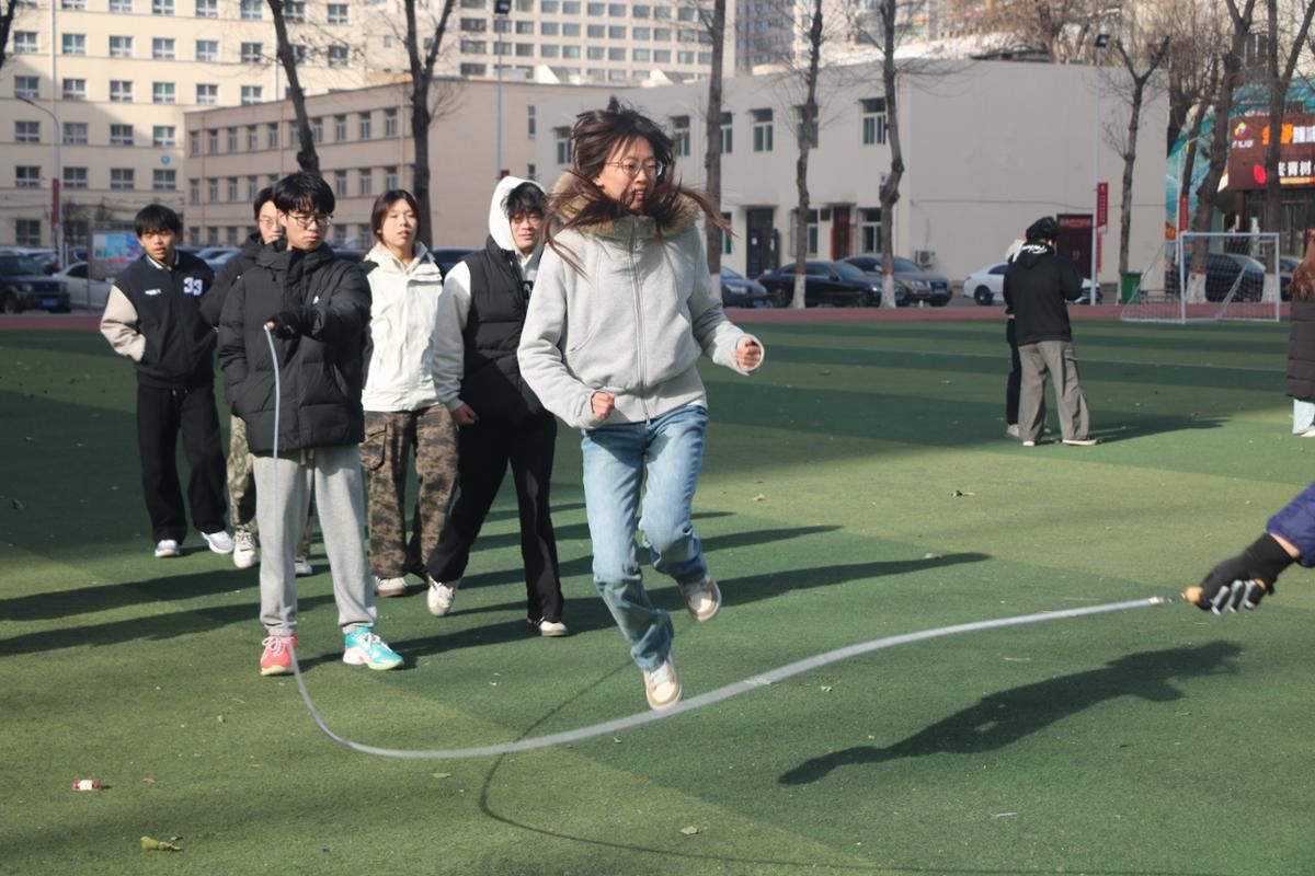 本次运动会共设五个项目:双人背靠背夹球跑、团队跳绳“8字穿梭”、同心拔河赛、接力跑及绕柱接力传球。各班参赛队伍全力以赴,默契配合。双人背靠背夹球跑中,选手们需协同用背部夹紧皮球前行,球若掉落则迅速返回起点重新开始;“8字穿梭”跳绳时,摇绳者保持匀速,穿梭队员按路线依次穿过,断绳后快速衔接;同心拔河赛中,每队10人紧握长绳,在呐喊声中合力拼搏,直至标志绳越过规定界线;接力跑与绕柱接力传球项目中,队员精准完成交接,严格遵守赛道规则,稳步冲刺终点,整场比赛趣味盎然、秩序井然。