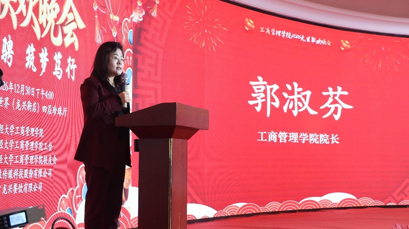2025精彩回顾视频后,郭淑芬院长发表新年致辞,向辛勤耕耘在教学、科研、育人、管理服务一线的全院教职员工,向长期以来支持学院发展的各界朋友致以最诚挚的感谢和最崇高的敬意!新的一年,学院将务实落实立德树人根本任务,持续构建"学子成才、教师成长、学院发展"的一流商学院,推进学院各项工作再上新台阶。